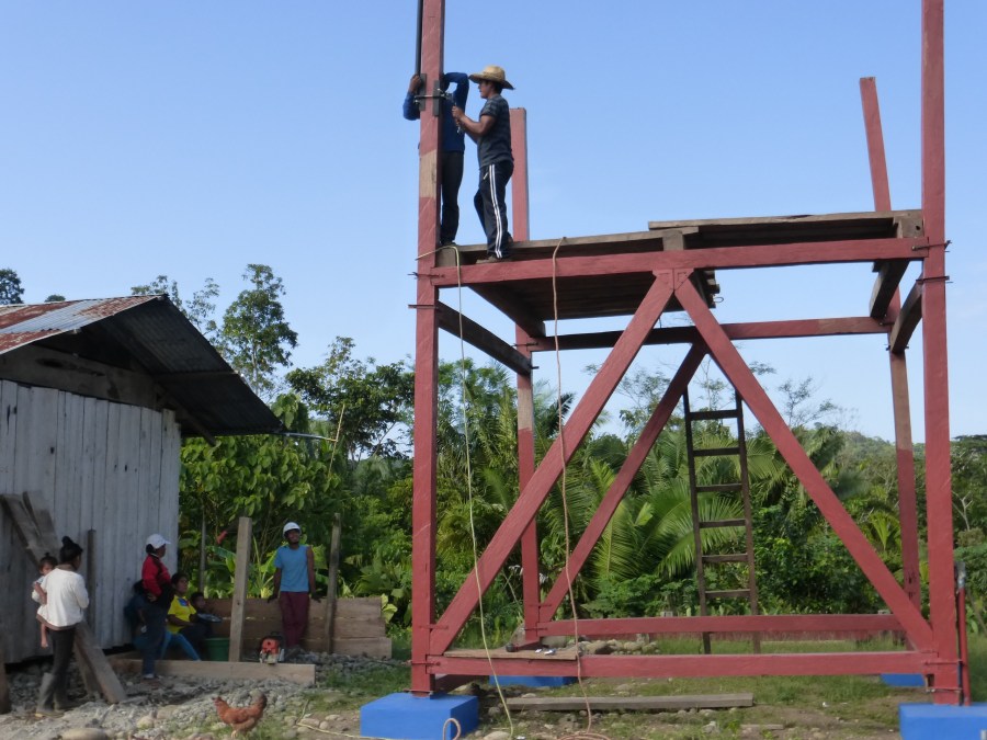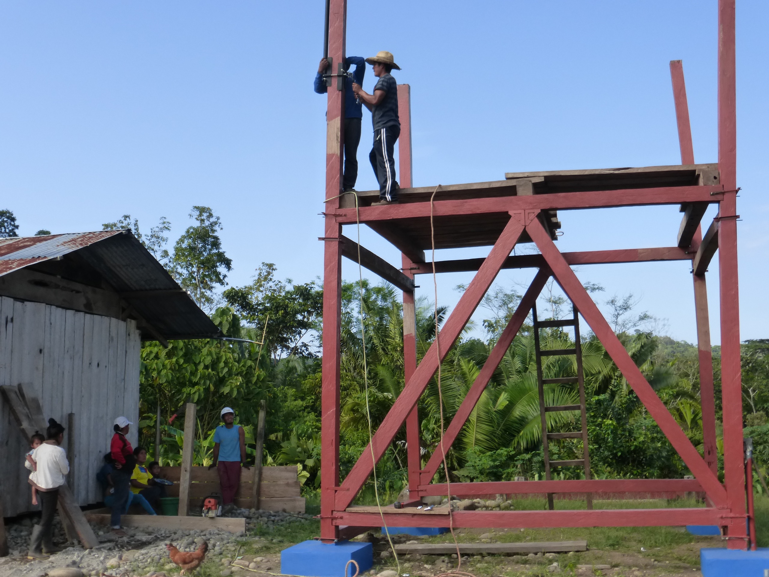 Pedro and Daniel installing the winch and pole used to raise beams